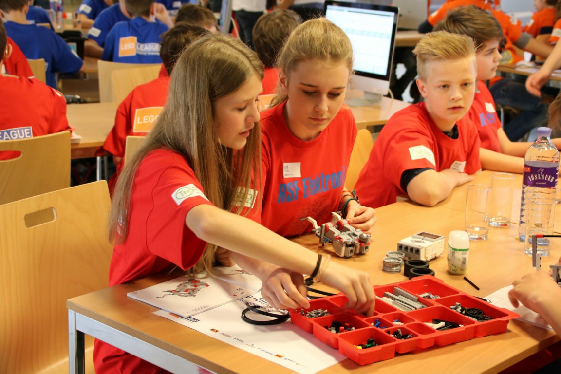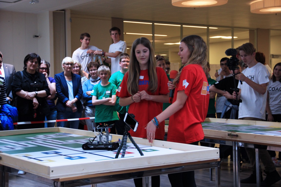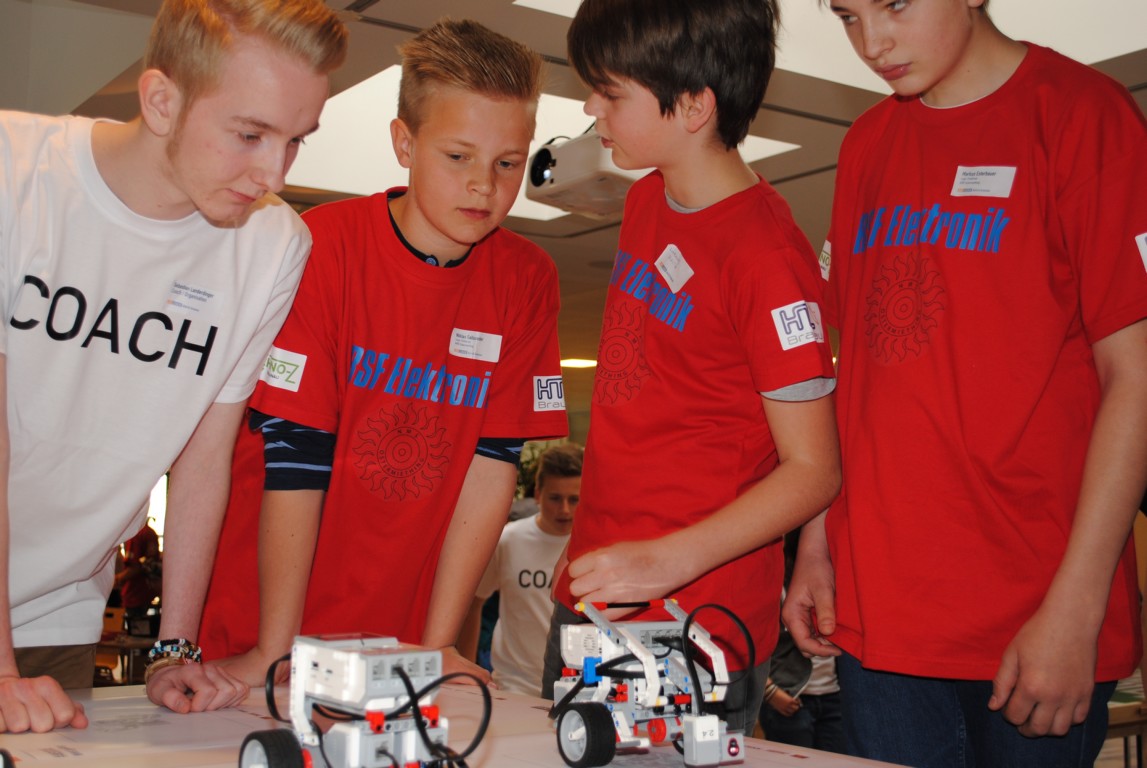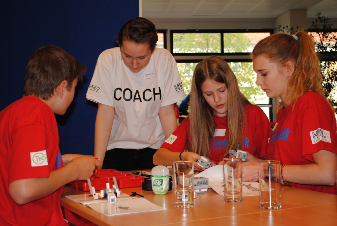 Dabei sollten sie in Teams die ihnen gestellten Aufgaben lösen. Zur Problemlösung mussten sie einerseits eine Programmiersprache erlernen und andererseits geeignete Roboter dazu bauen.