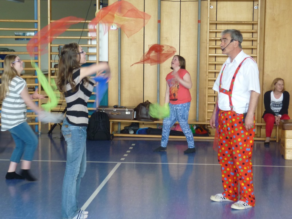 Alle zwei Jahre kommt Herr Peter Zencuch zu uns an die Schule und führt die Kinder in die Kunst des Jonglierens ein.