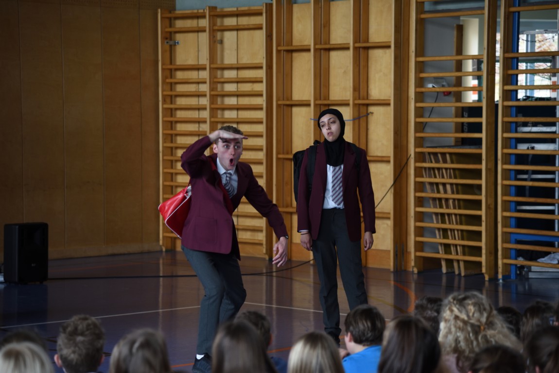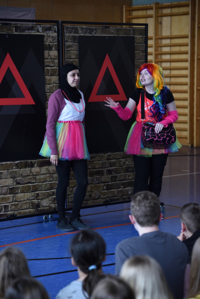 The great ending and highlight of the day was the performance of “Vienna`s English Theatre” with the play “A Family Affair”. The story is about Zainab, a refugee schoolgirl from Syria and Danny an English teenager whose single-parents fall in love. The Syrian girl doesn`t want to share her dad and the English boy is not keen on getting a strict stepfather, so they try to stop their parents from seeing each other. Not very nice, hmm? However, finally things turn out well again.