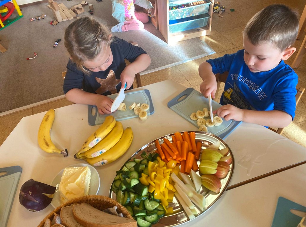 Kürzlich beteiligte sich die 4b im Rahmen des Religionsunterrichts an einer Bananen-Verteilaktion und verschenkte 100 fair gehandelte Bananen an Passanten, um auf die Bedeutung des FAIRTRADE-Siegels aufmerksam zu machen. Im benachbarten Kindergarten war die Freude besonders groß über das spontane Geschenk, denn zufällig stand „gesunde Jause“ auf dem Programm und sogleich ging es ans Schneiden.