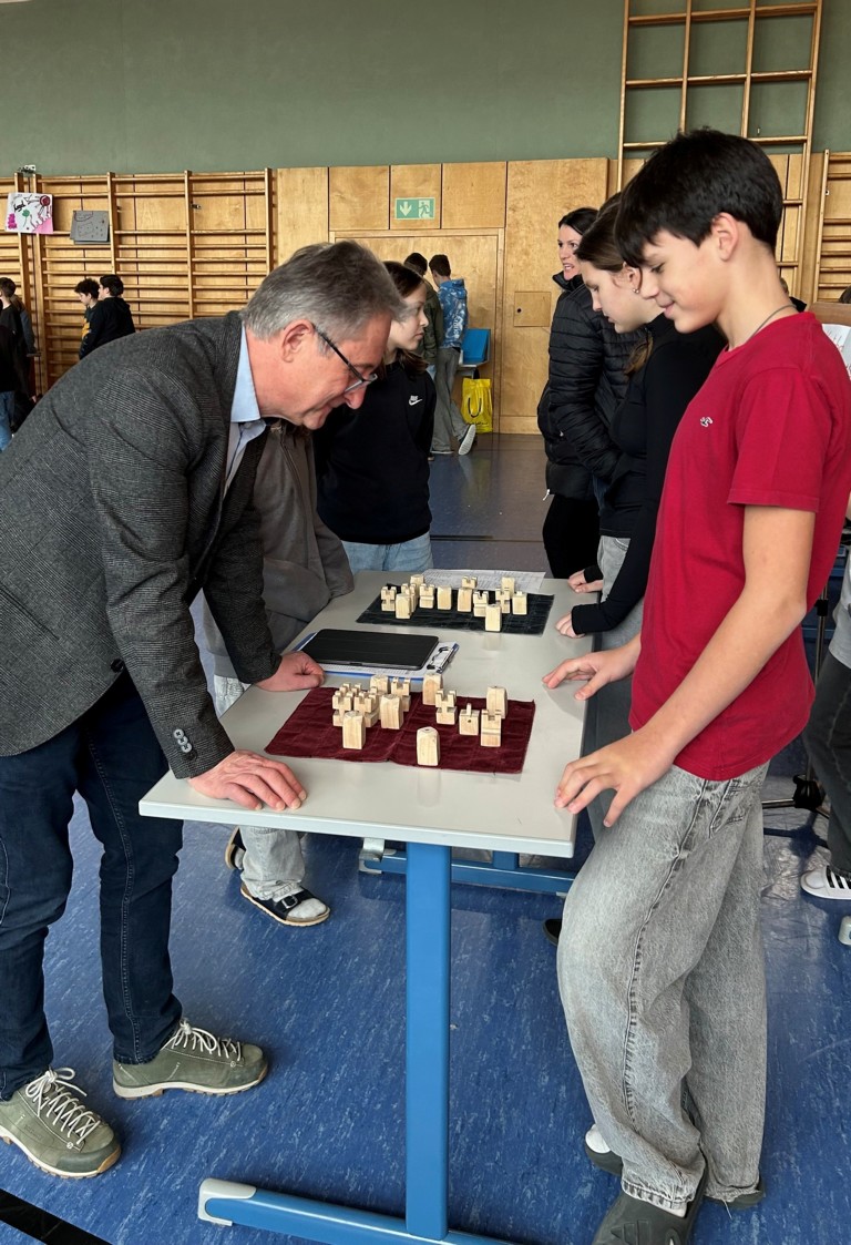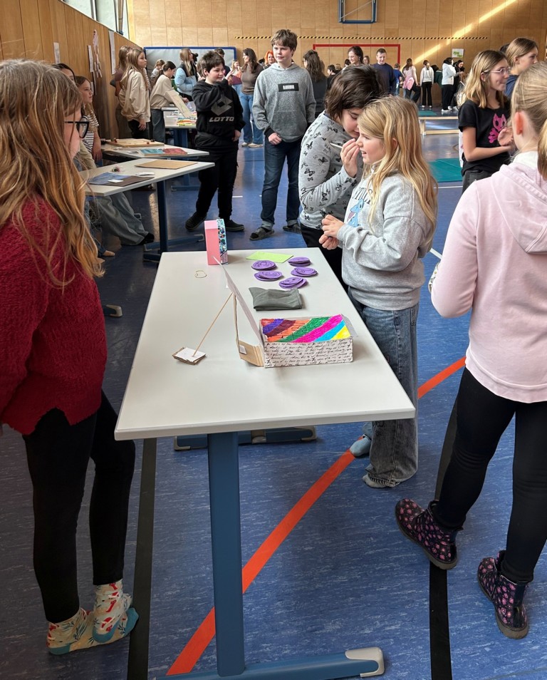 Es entstanden unterschiedlichste Spiele, von kreativen Gesellschaftsspielen über spannende Geschicklichkeitsspiele bis zu kniffligen Logikspielen. Den krönenden Abschluss bildete die Spielemesse am Donnerstag vor den Semesterferien, die von den 4. Klassen der VS Ostermiething und von vielen Eltern besucht wurde.