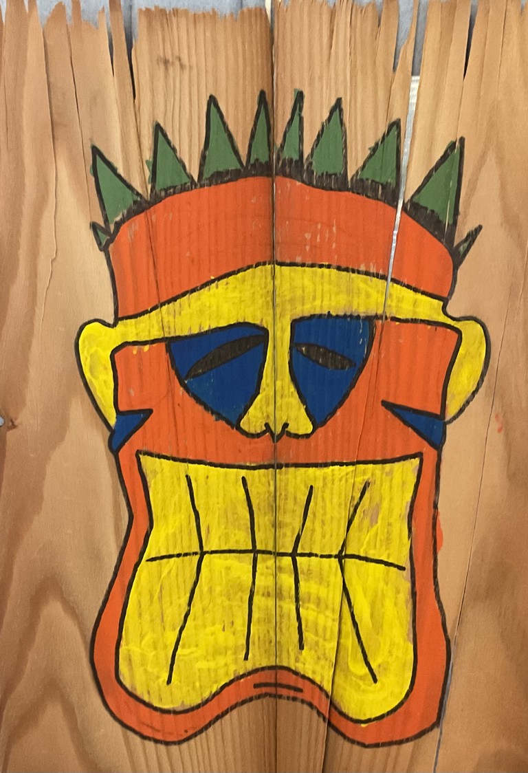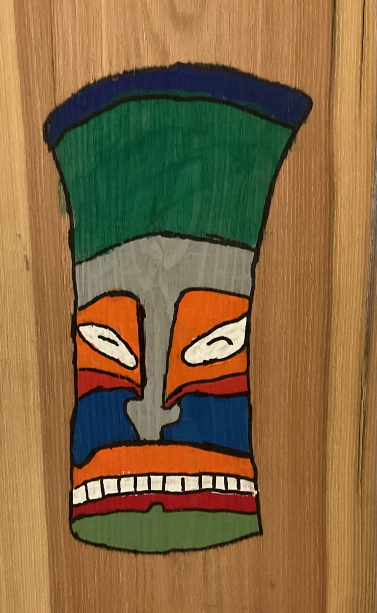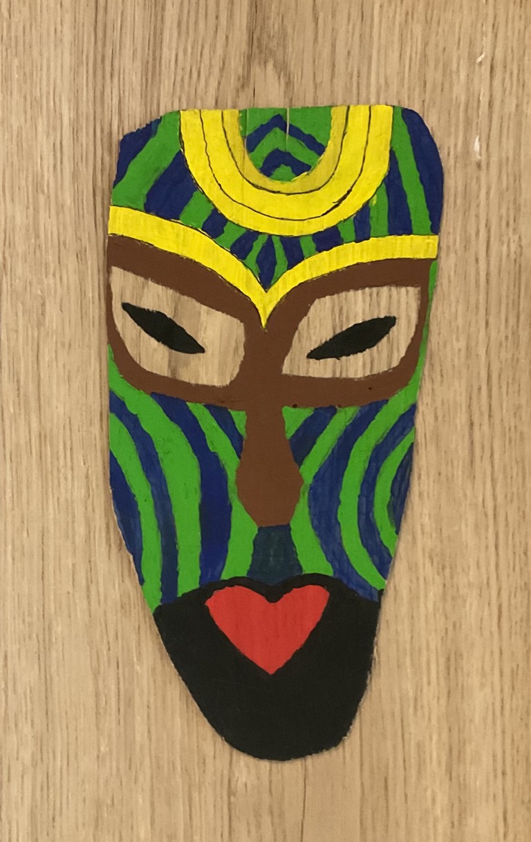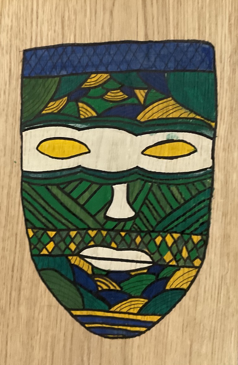 Was zunächst wie wertloses Restmaterial wirkte, wurde im Zeichensaal zu neuem Leben erweckt - alte Furnierplatten – und sofort entstand die Idee, daraus afrikanische Masken zu gestalten.
