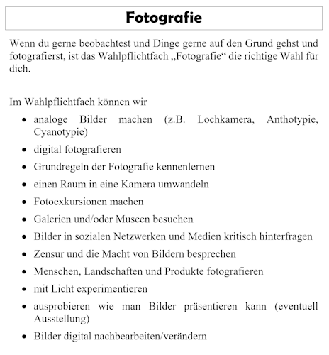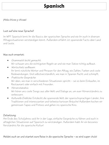 Informationen zu den angebotenen Wahlpflichtfächern.