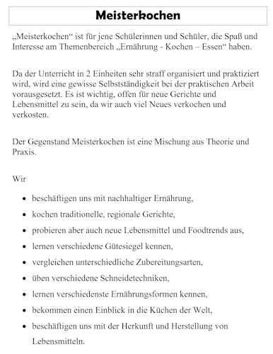 Wahlpflichtgegenstände - Wahl für das Schuljahr 2025/26