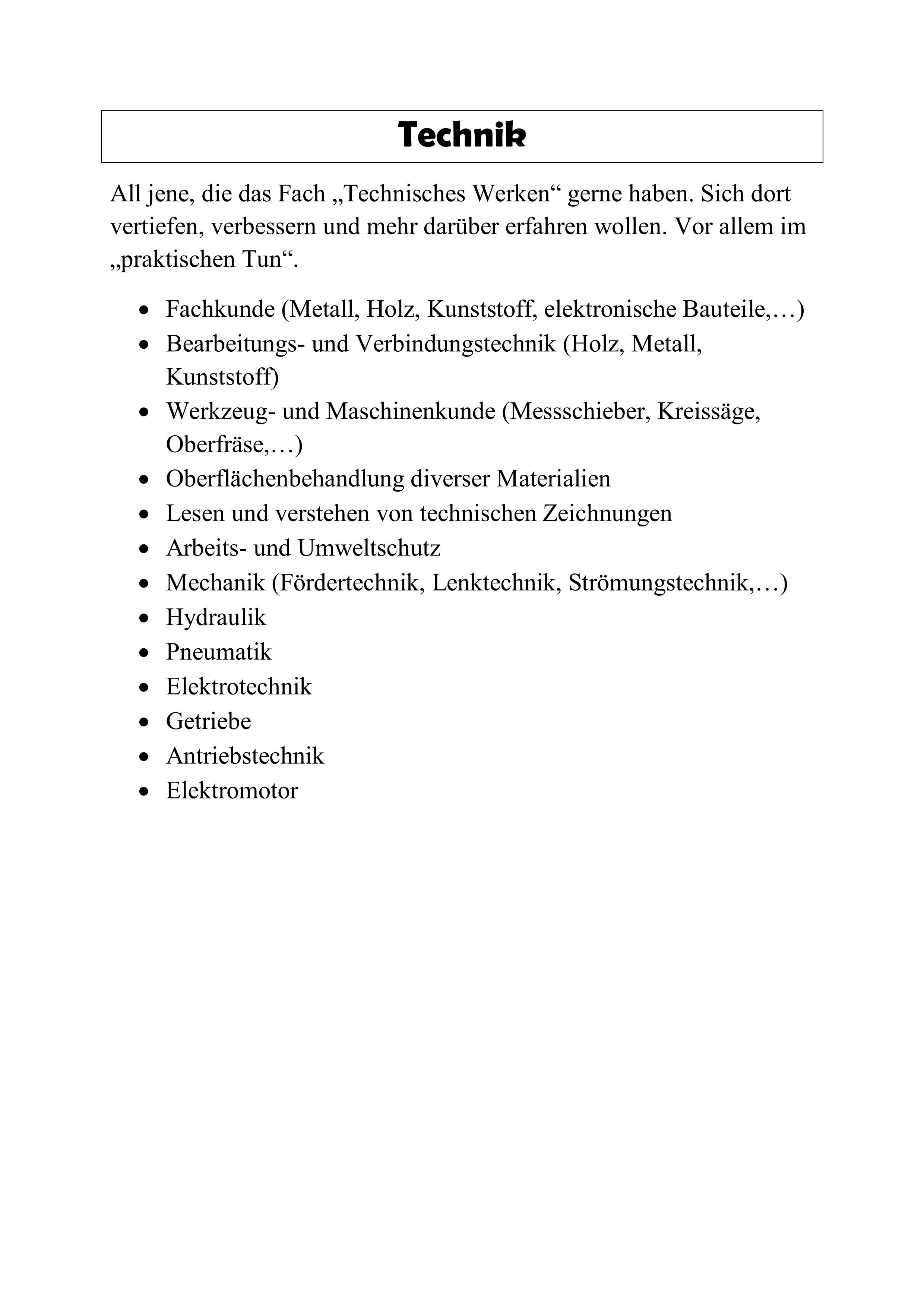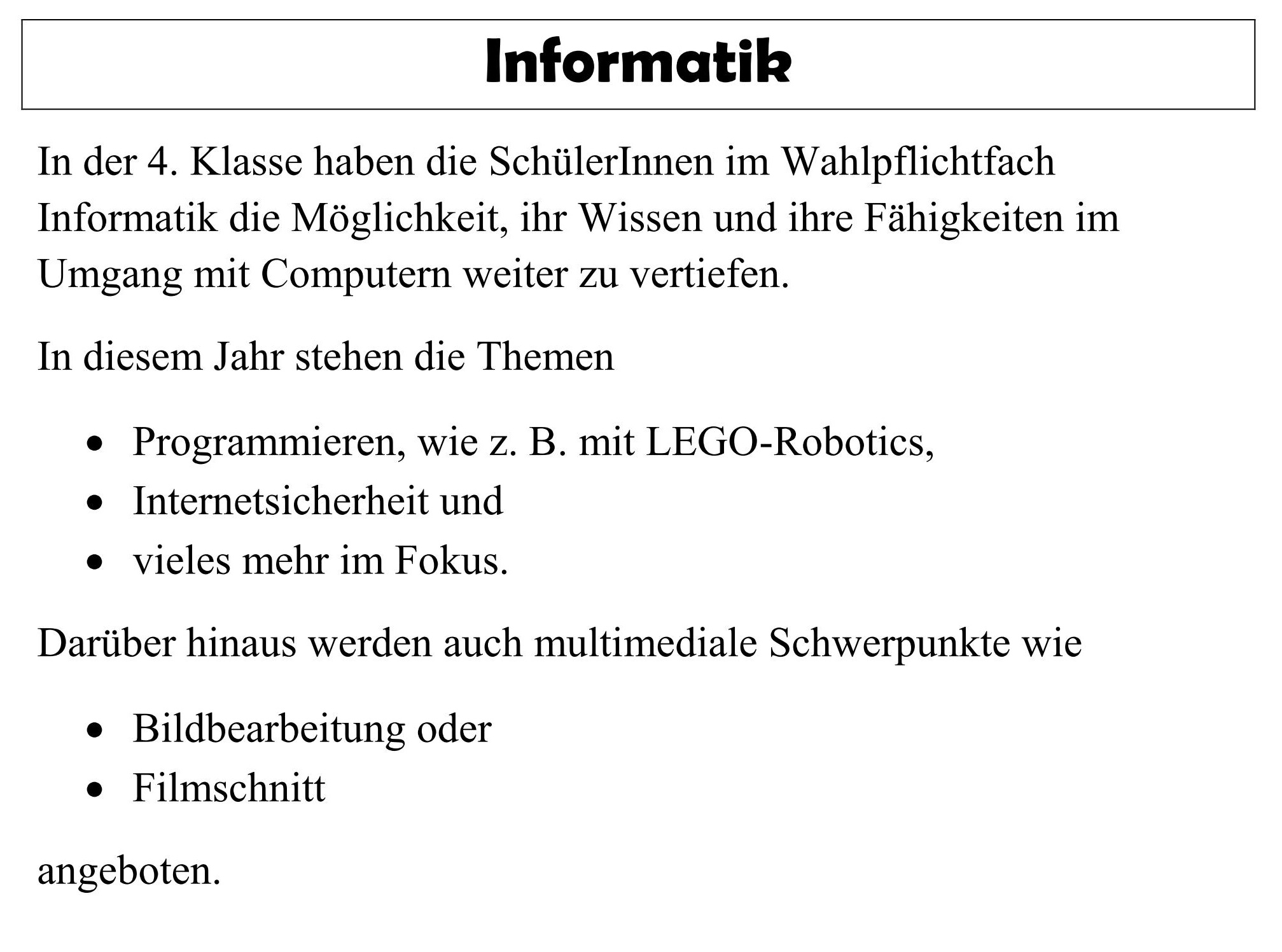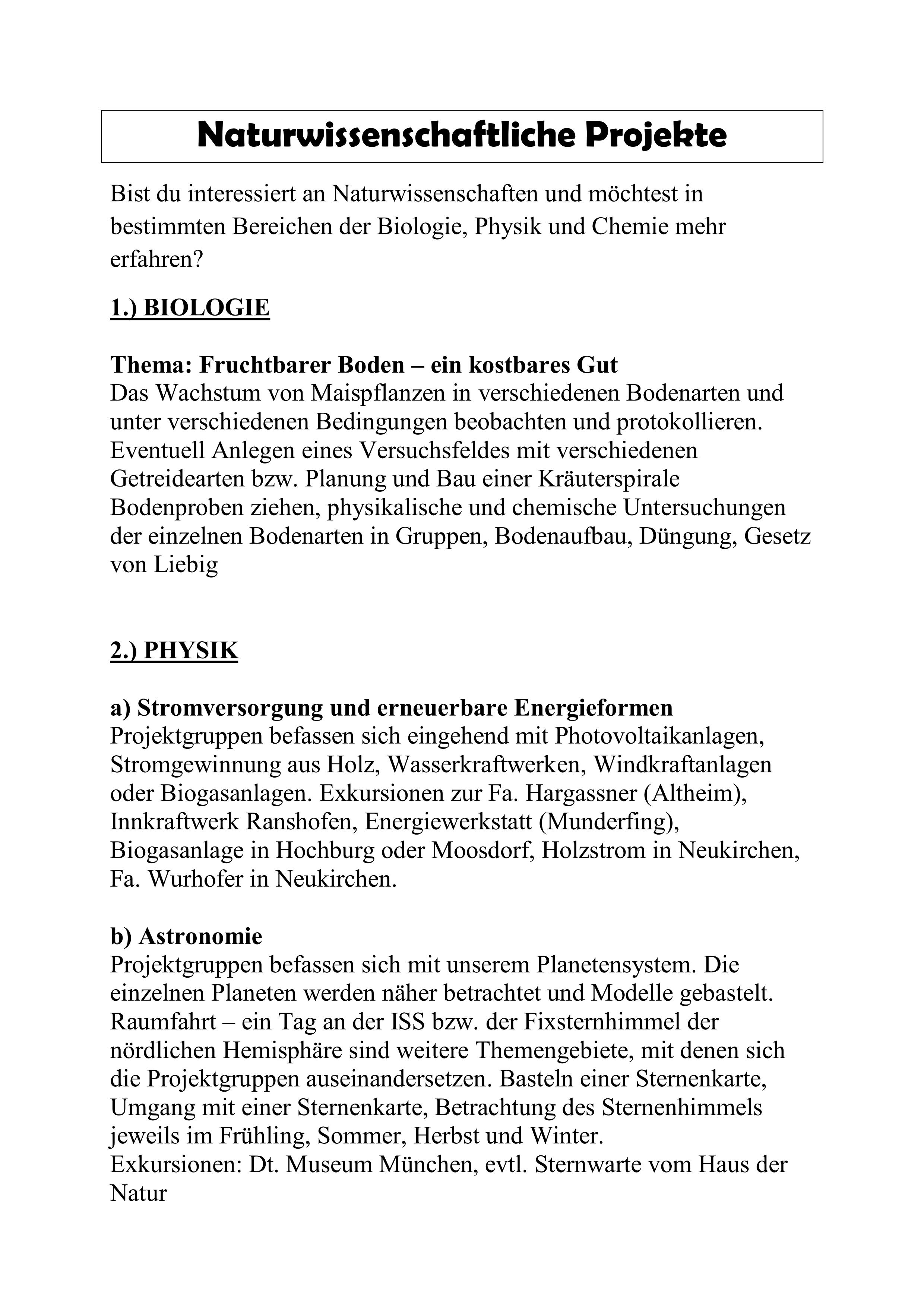 Informationen zu den angebotenen Wahlpflichtfächern