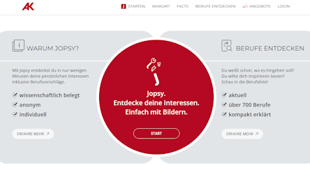Mit Jopsy entdeckst du in nur wenigen Minuten deine persönlichen Interessen inklusive Berufsvorschläge.