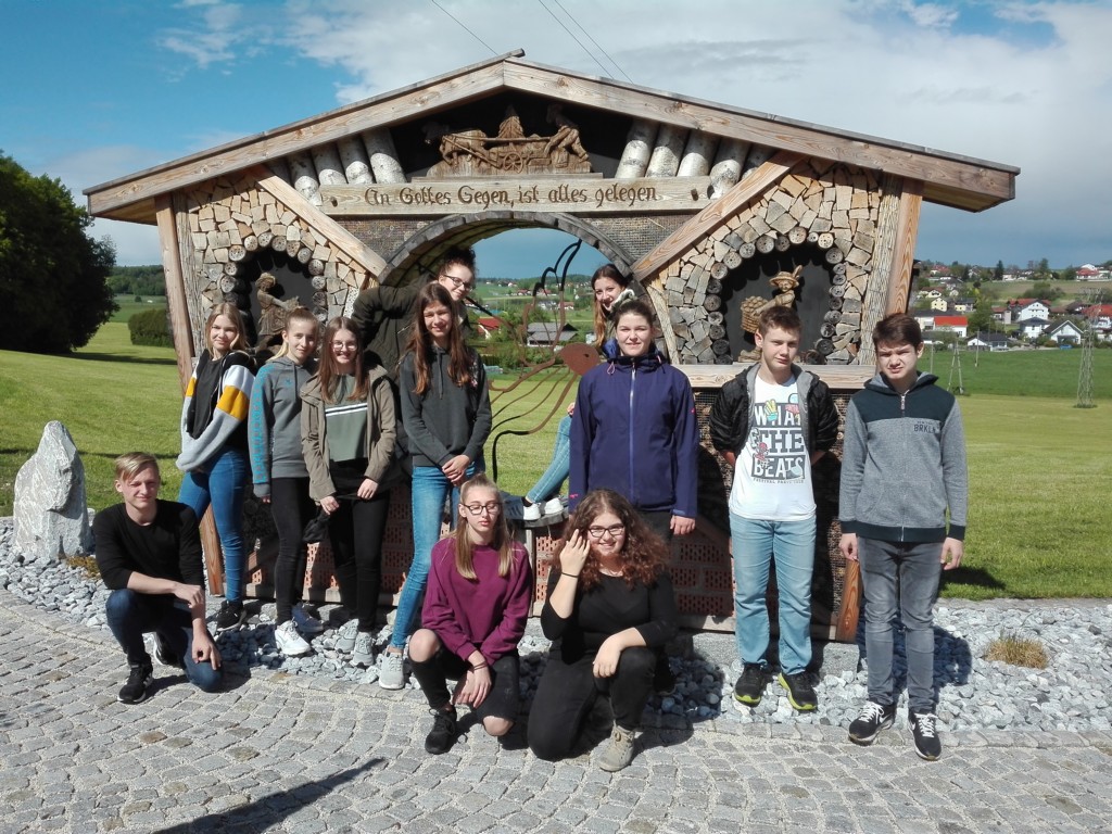 Zuerst durften die Schüler ihren eigenen Brotteig aus den bereitgestellten Zutaten kneten. Anschließend musste dieser im Gärkasten rasten. Wir machten währenddessen eine kurze Wanderung entlang des Brotwegs zum RSF-Platz. Danach wurden die Laibe in den Holzofen „geschossen“. Während diese gebacken wurden, machten wir eine Rundtour zum Friedensplatz und über Ehersdorf zurück zum Zentrum.