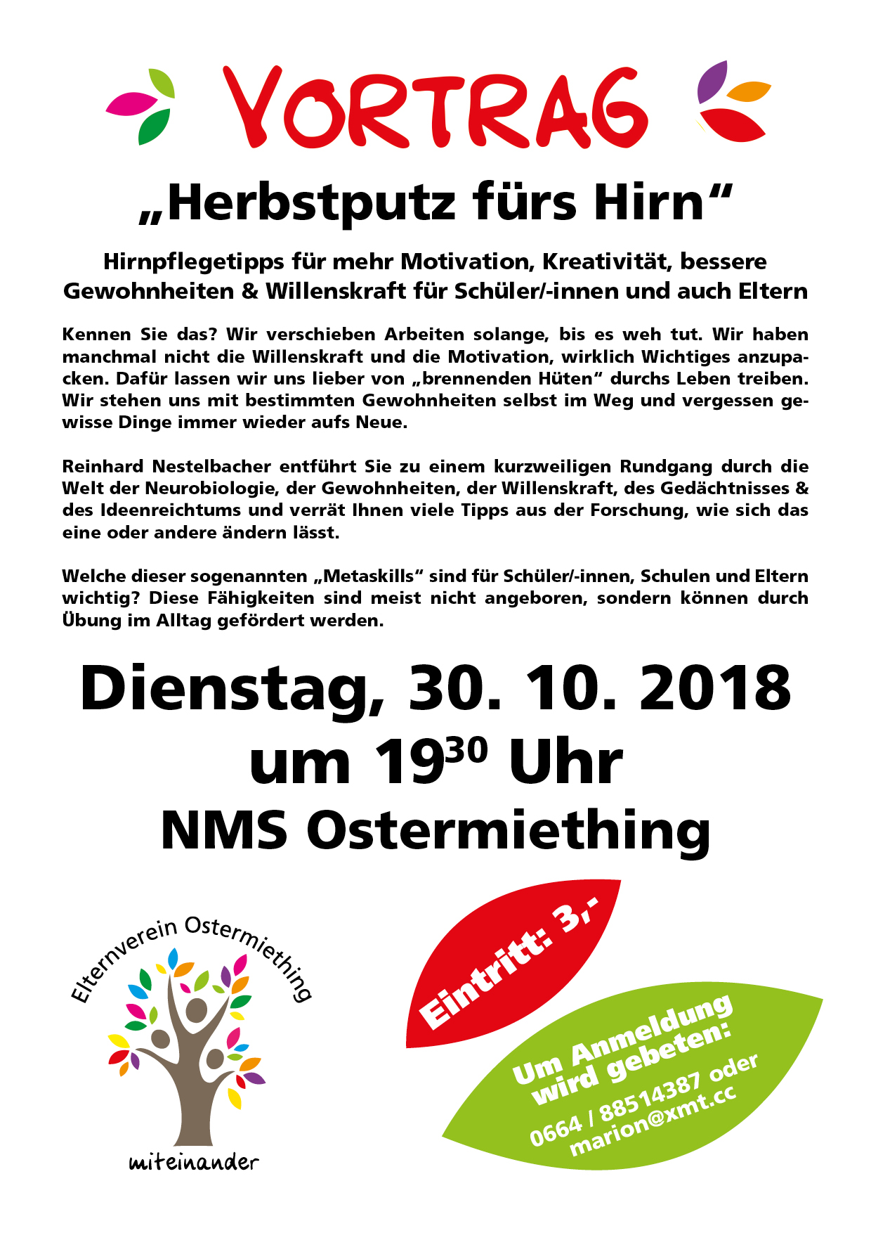 Vortrag zum Thema "HERBSTPUTZ FÜRS HIRN" am 30. Oktober 2018