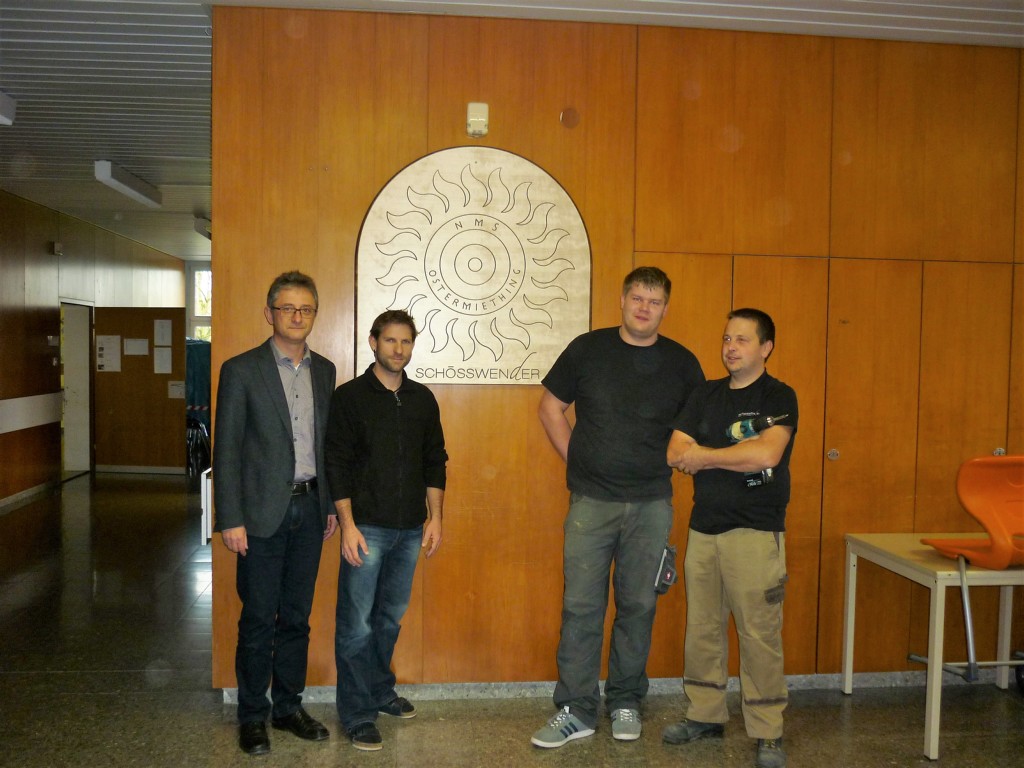 Unter der Leitung von Hr. Bernhard Tkauz und Hr. Hans Werner Hochradl wurde das Schullogo der NMS Ostermiething mit einer CNC-Fräse in eine ca. 1x1 Meter Tafel gefräst und an uns übergeben.