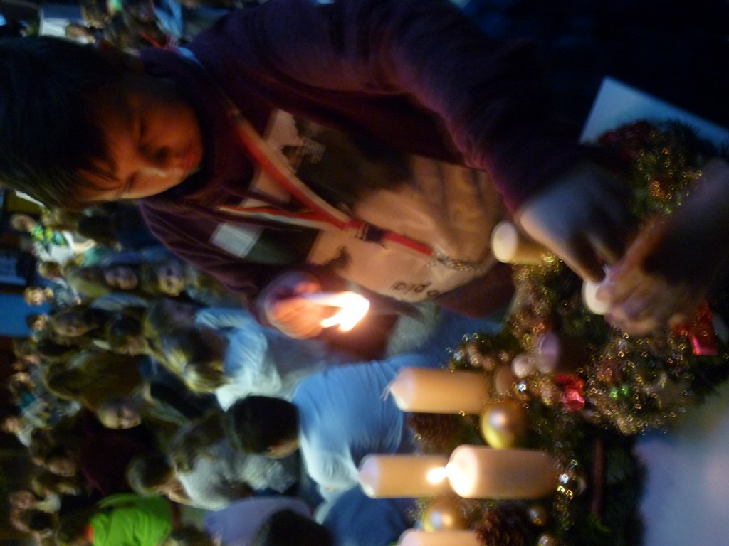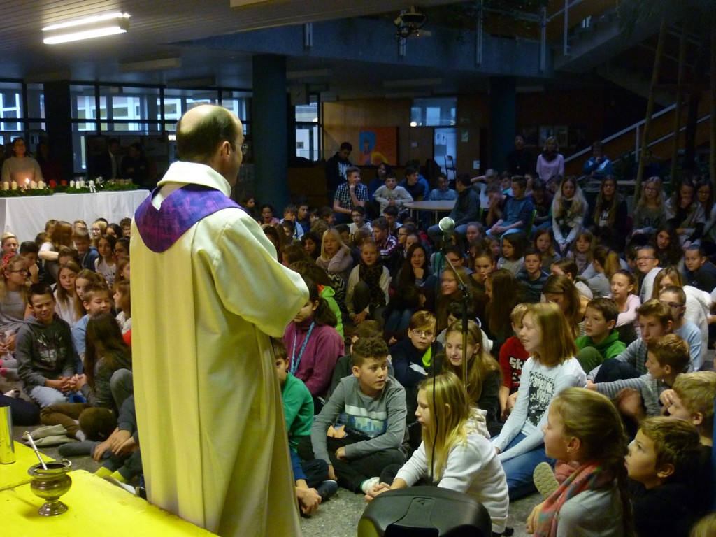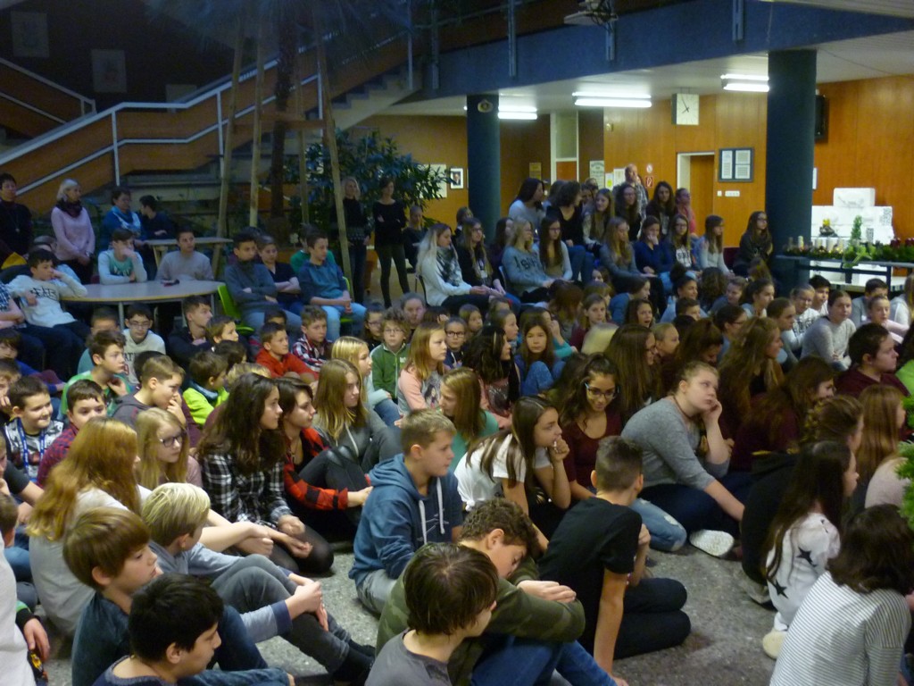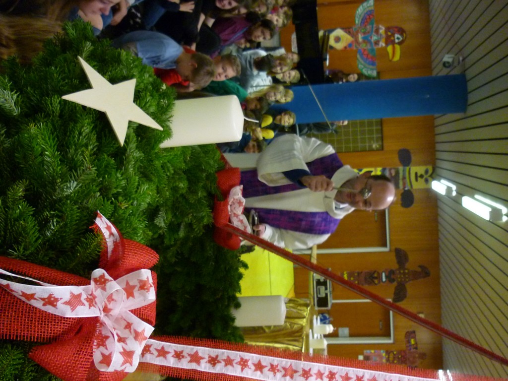 Alljährlich findet Ende November an unserer Schule eine Adventkranzweihe statt. In der Vorbereitung dazu binden unsere Schüler unter der Anleitung von Fr. Anneliese Maier einen Adventkranz für die Aula. Er hat einen Durchmesser von 1,6 Metern und gehört damit zu den größten Adventkränzen in unserer Umgebung. Gestaltet wird die Adventkranzweihe von unserer Religionslehrerin Fr. Christina Schernberger und unseren Schülern. Besonders freuen wir uns, dass unser Pfarrer Mag. Markus Menner zu uns kommt und die Weihe durchführt. |