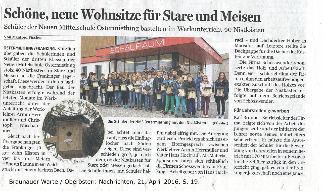 Zum Gelingen des Projektes stellte uns die Firma RSF aus Tarsdorf die notwendigen Bausätze zur Verfügung. Herr Christoph Nussbaumer unterstütze und begleitete die SchülerInnen im Laufe des Schuljahres.