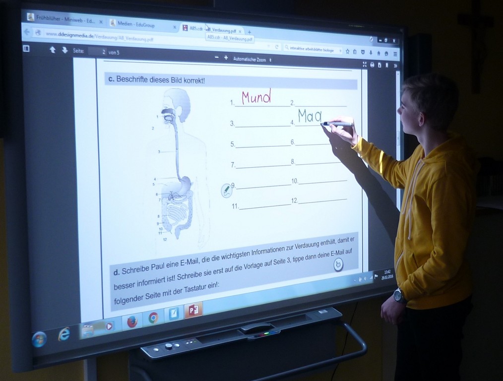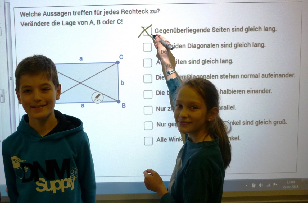 In der ersten Schulwoche nach den Semesterferien wurden in unserer Schule zwei Smart-Boards neu installiert. Auf der berührungssensitiven Oberfläche kann mit den Fingern oder eigenen Stiften geschrieben werden. Angeschlossen an den Computer und an das Internet können Programme abgespielt und gesteuert werden. Mit den Smart-Boards stehen nun den LehrerInnen zahlreiche Möglichkeiten für den Unterricht zur Verfügung. Unsere SchülerInnen zeigten bereits großes Interesse an den neuen „Schultafeln“.