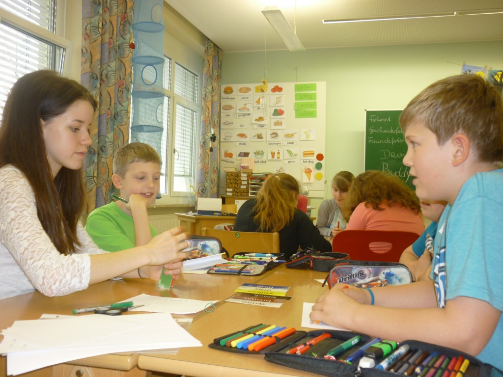 They were learning new words in order to create *Wanted-posters*. Our pupils taught them excellently and that’s why the young learners were able to introduce themselves and to talk about their hobbies and favourite things in the end.