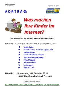 Am Donnerstag, den 9. Oktober findet im Gemeindesaal Tarsdorf ein Vortrag mit dem Thema statt: